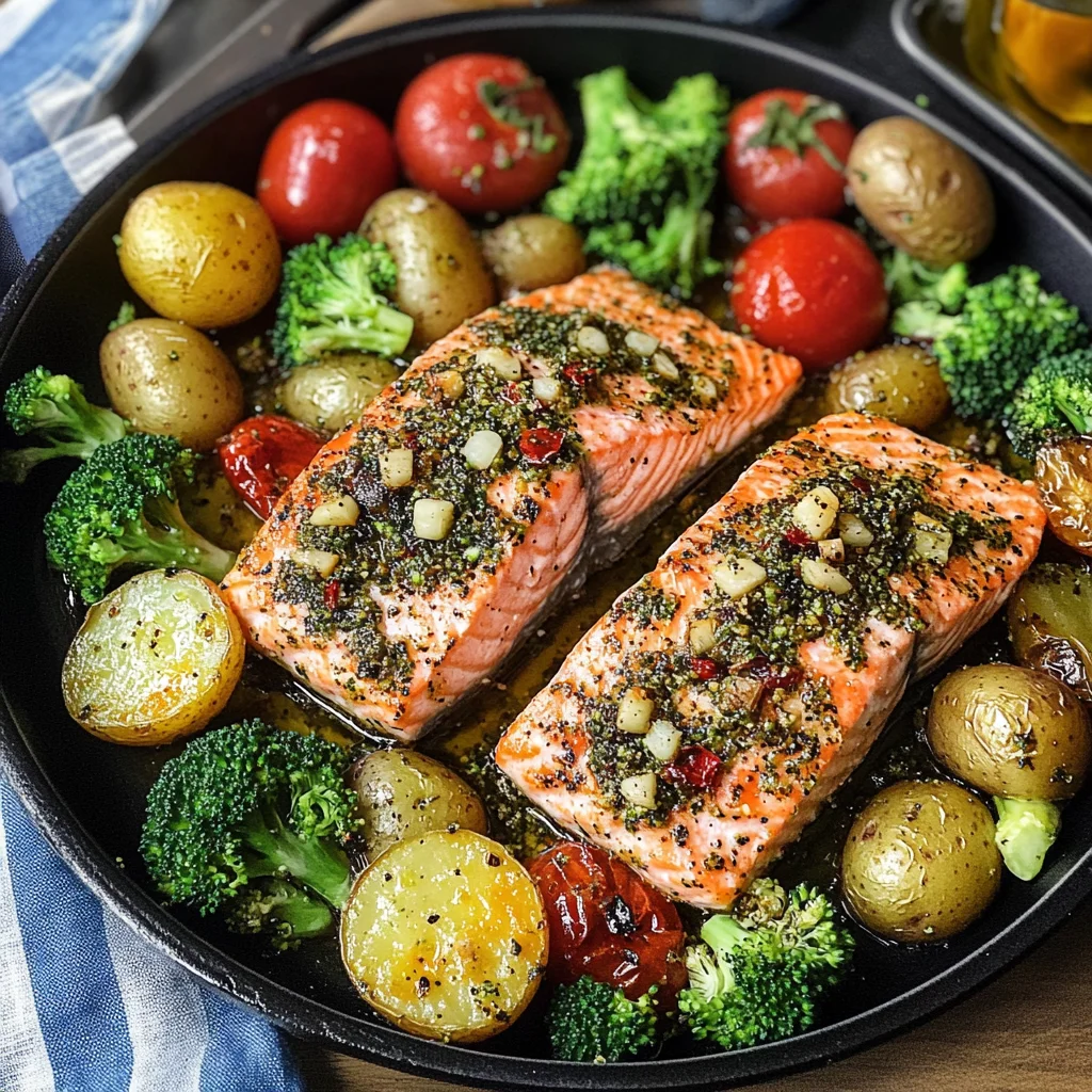 - Flavorful: The combination of za’atar and garlic creates a savory profile that elevates the salmon and veggies.